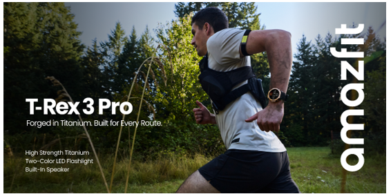 Amazfit, marchio globale nel mercato dei dispositivi indossabili per lo sport, ha presentato oggi il suo ultimo smartwatch, Amazfit T-Rex 3 Pro. Progettato per gli appassionati di sport di resistenza, compresi i trail runner, introduce più di una dozzina di nuove funzionalità, come funzioni di mappatura avanzate, una torcia integrata, un altoparlante con microfono e un vetro zaffiro che protegge il display. T-Rex 3 Pro utilizza anche un materiale più resistente nella sua struttura: lega di titanio di grado 5.