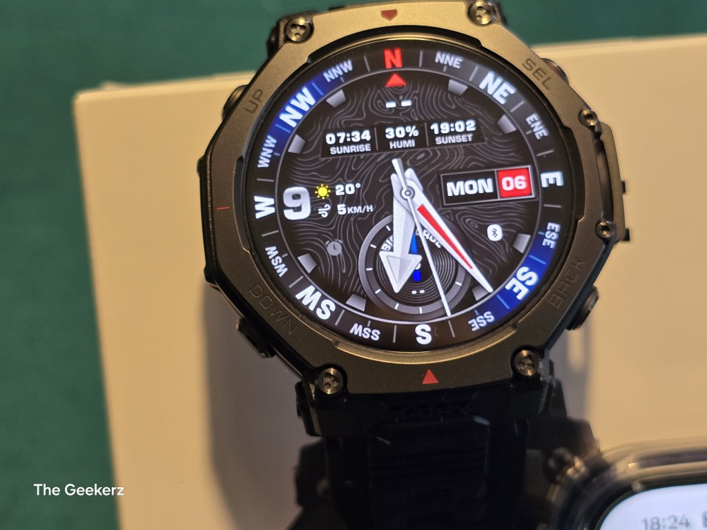 Il design dell’Amazfit T-Rex 3 Pro è inconfondibilmente “rugged,” ma con un’evoluzione di stile che lo rende anche sorprendentemente elegante. È disponibile in due dimensioni di cassa, da 48mm (come l’esemplare arrivato in prova qui @TheGeekerz) e 44mm, permettendo una scelta tra autonomia massima e maggiore portabilità. Entrambe le varianti condividono però una costruzione di livello militare (certificazioni MIL-STD), pensata per resistere a temperature estreme (fino a -30°C), urti, cadute e immersioni.
