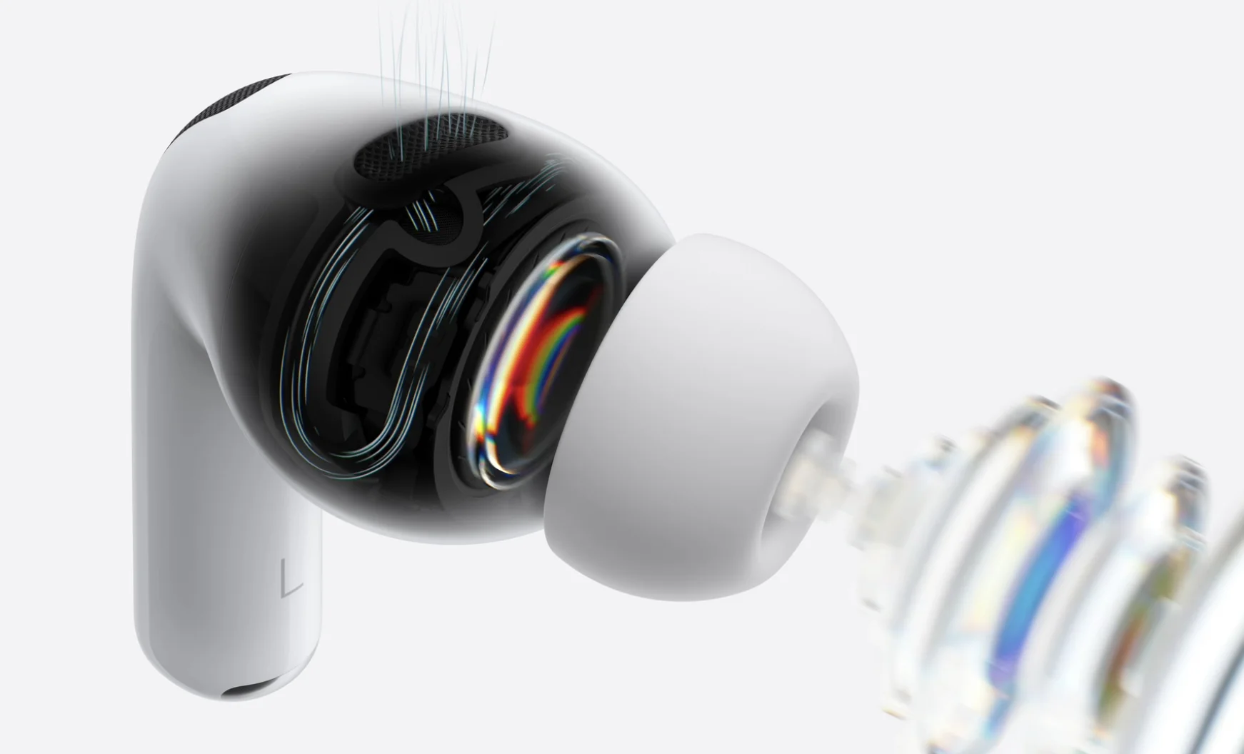 - ANC di nuova generazione: cancellazione attiva del rumore fino a 2× più efficace rispetto agli AirPods Pro 2 e 4× rispetto al modello originale.