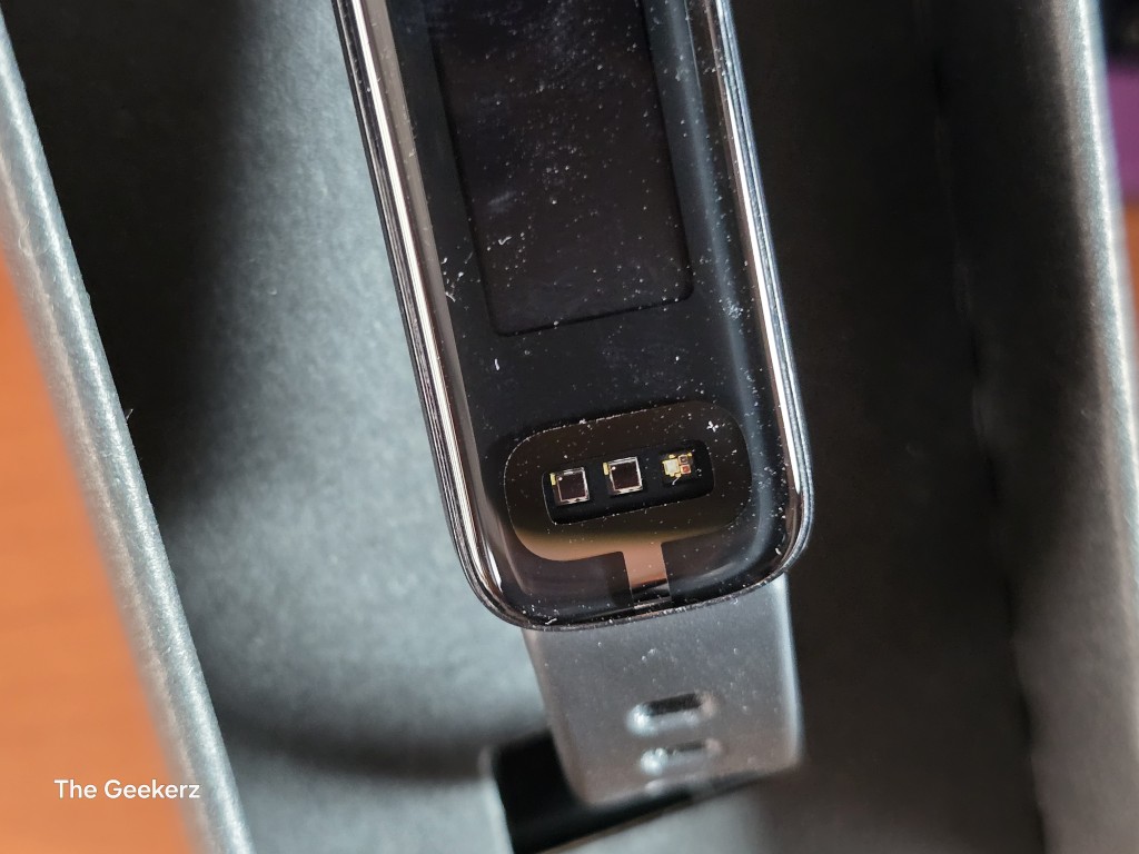 All’interno della bella confezione color testa di moro troviamo un corposo manuale d’istruzioni, più per il numero di idiomi disponibili che non per le pagine effettivamente utili (alla fine sono solo 9), un secondo bracciale di colore bianco/panna, utile per accoppiare l’oufit nel modo migliore, il cavo con testina magnetica per la ricarica.