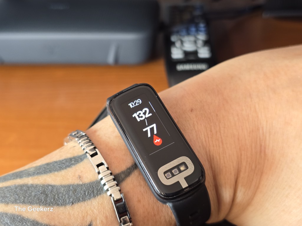 Al centro dell’esperienza utente troviamo il display AMOLED da 1,1 pollici. Sebbene le dimensioni siano contenute per mantenere la leggerezza, la tecnologia AMOLED assicura colori vividi, neri profondi e una leggibilità eccellente anche sotto la luce diretta del sole. L’interfaccia utente, progettata per essere intuitiva, valorizza ogni pixel, garantendo che i dati sanitari più critici siano sempre in primo piano.
