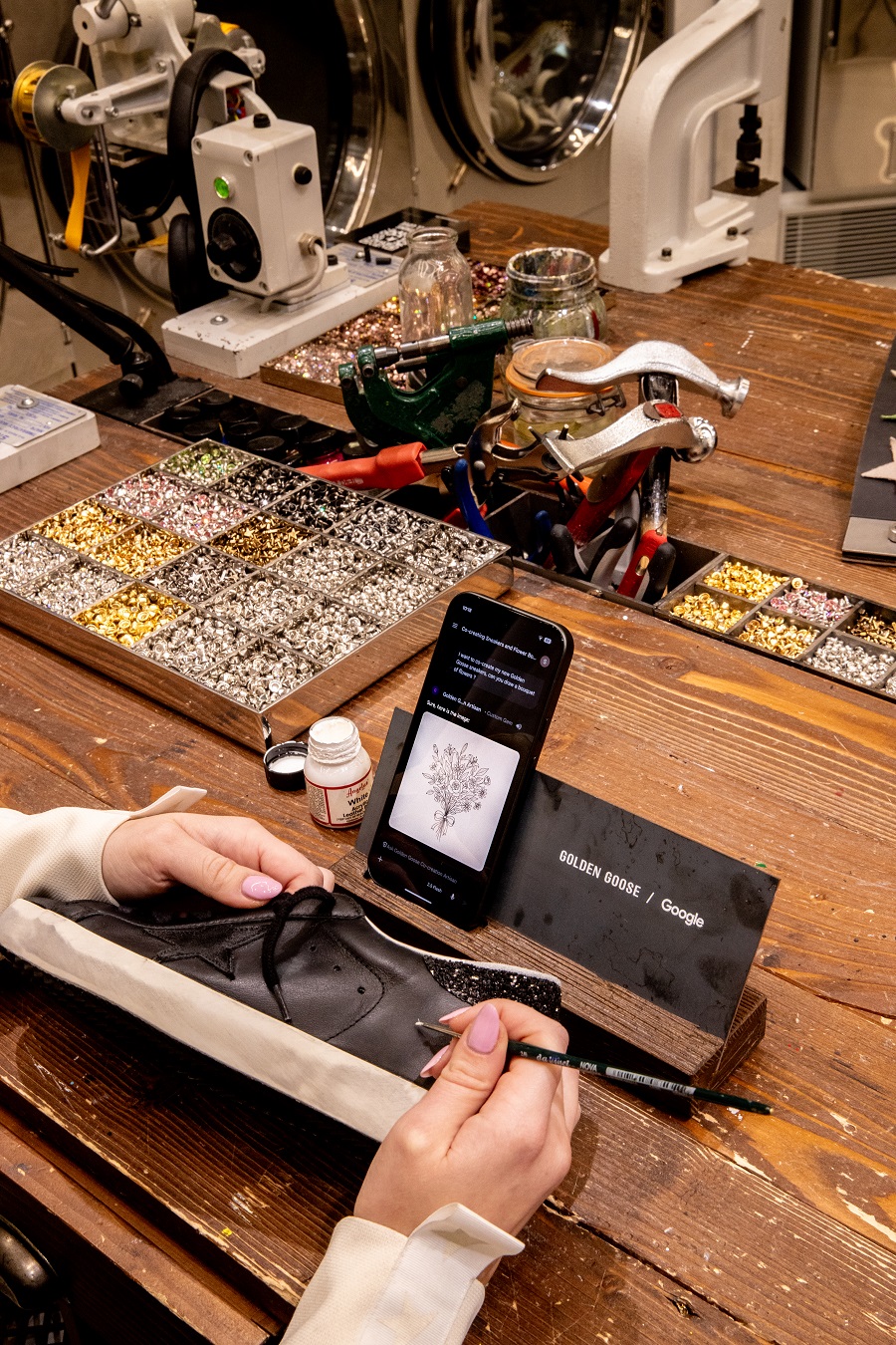 Grazie a questa iniziativa, le persone potranno utilizzare i dispositivi Google Pixel e una “Gemma” creata all’interno dell’app Gemini per co-creare opere digitali uniche. Queste creazioni verranno poi trasformate in realtà dagli artigiani di Golden Goose, applicate a mano sulle iconiche sneakers del brand, offrendo un’esperienza che fonde innovazione digitale e artigianalità tradizionale.
