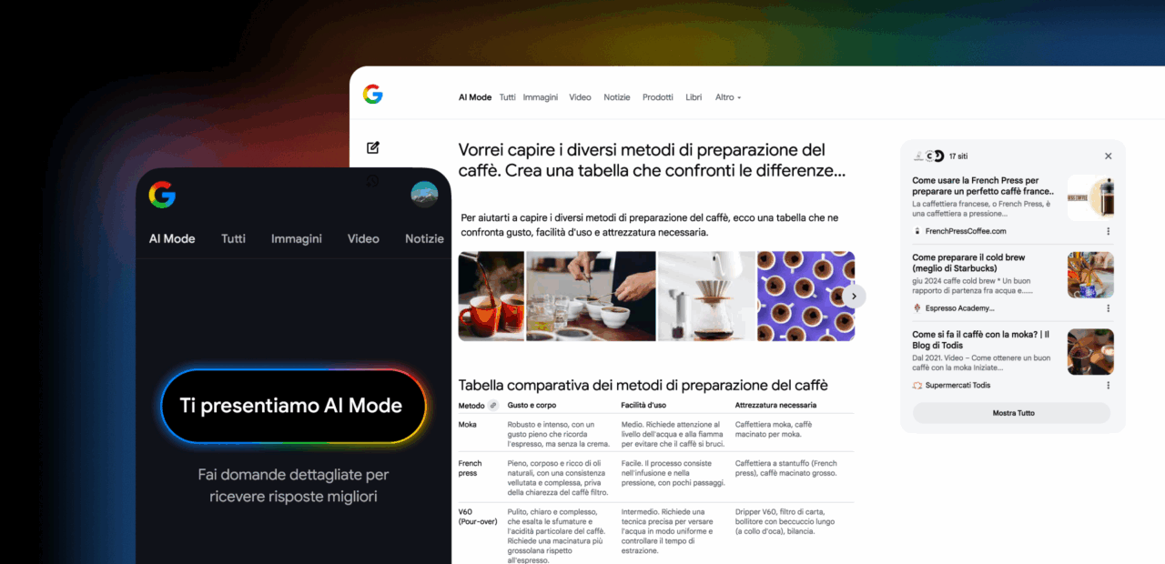 Da oggi è disponibile AI Mode nella Ricerca Google in 38 nuove lingue e in quasi 50 nuovi paesi e territori, inclusi l’Italia e l’italiano!