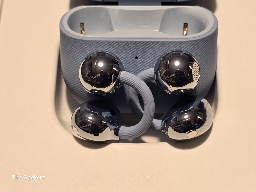Anche la custodia ha ricevuto un restyling. È più compatta e presenta una finitura che Huawei definisce “anti-impronta” e più resistente ai graffi. Le colorazioni disponibili, tra cui spiccano il nuovo Titanium Grey e il raffinato Sand Gold, strizzano l’occhio al mondo della gioielleria, rendendo le FreeClip 2 un accessorio di stile oltre che un gadget tecnologico. Il modello in prova qui @TheGeekerz è quello con finitura in simil “denim” definito, appunto, “Denim Blue”. Questo colore incarna un senso di libertà illimitata, comfort, stile