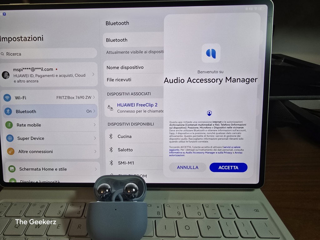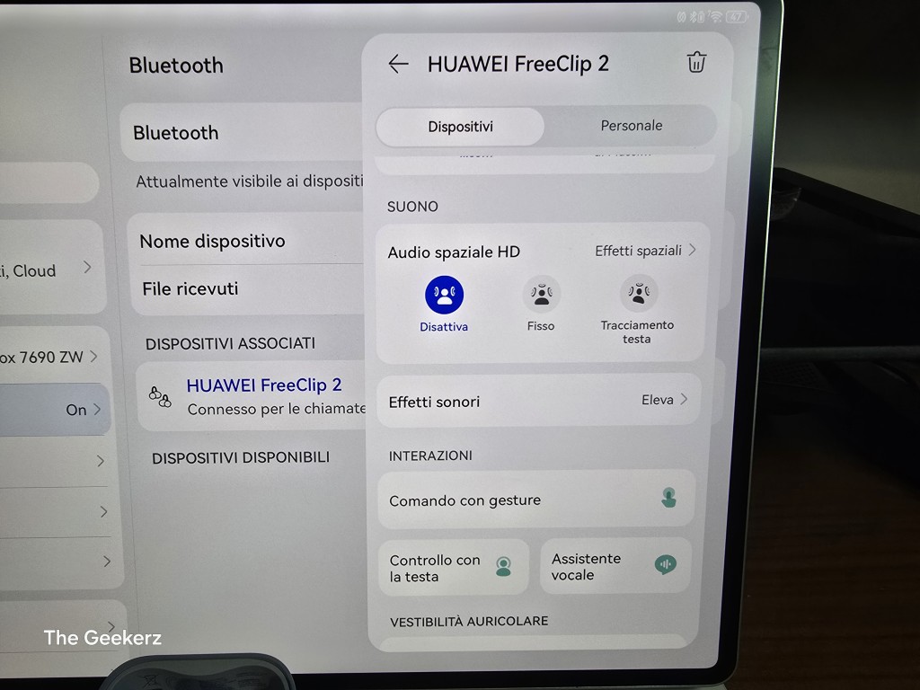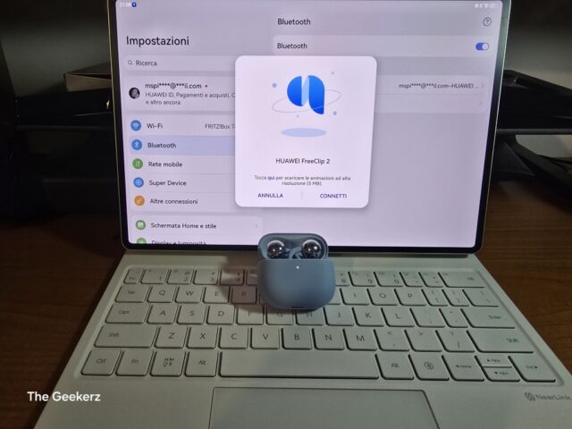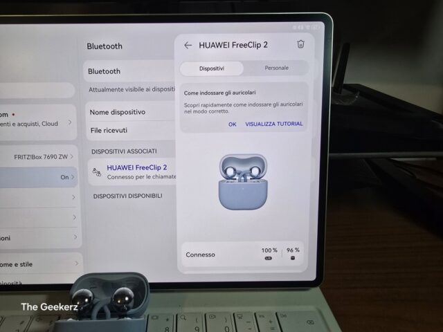 Per l’accoppiamento con i dispositivi Huawei che utilizzano HarmonyOS, io ho utilizzato il HUAWEI MatePad Pro (2025) che ho recensito qualche settimana fa, non occorre scaricare nessuna applicazione. Basterà tenere premuto il pulsante laterale per due secondi ed il case entrerà in modalità “accoppiamento”. Sono previste alcune funzioni esclusive come, ad esempio, l’audio spaziale che, purtroppo, non funziona sui dispositivi non Huawei. Di seguito una breve galleria esplicativa di come appare la gestione degli auricolari sul Matepad Pro.