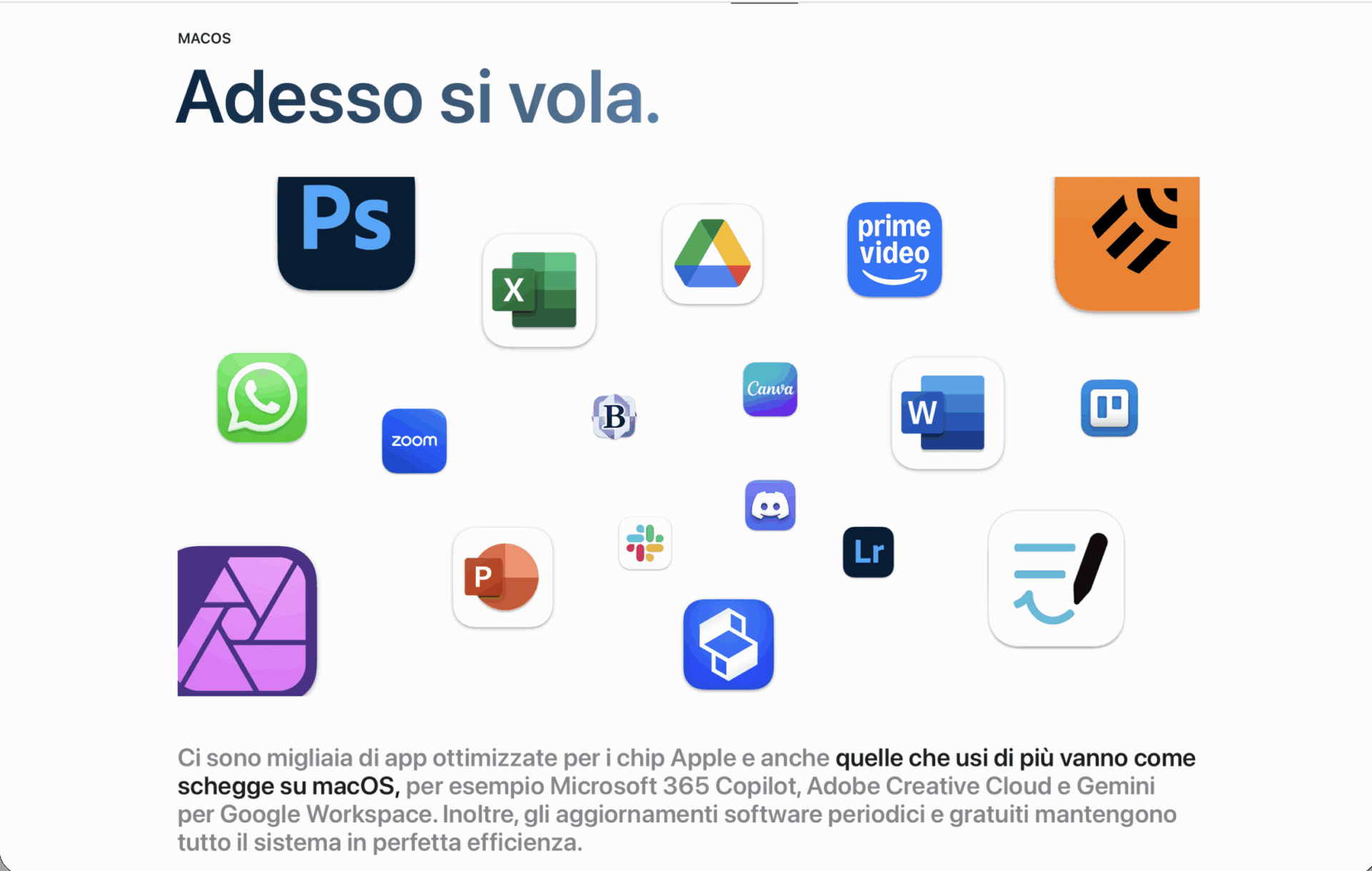 La differenza più grande è la mole e la qualità dei progetti creativi che Apple si aspetta che tu faccia. Il MacBook Air è stato a lungo considerato come il fratello minore del MacBook Pro e lo si nota nella stessa pagina del sito Apple dedicata all’Air dove vengono pubblicizzate app di Adobe e di Affinity.
