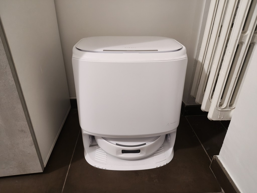 Esteticamente, il Narwal Freo Z10 Pro mantiene il DNA tipico di Narwal, molto elegante: linee pulite, finitura bianca opaca di alta qualità e una stazione di ricarica che, pur essendo imponente, riesce a non sfigurare in un salotto moderno o in qualsiasi locale lo si voglia sistemare.