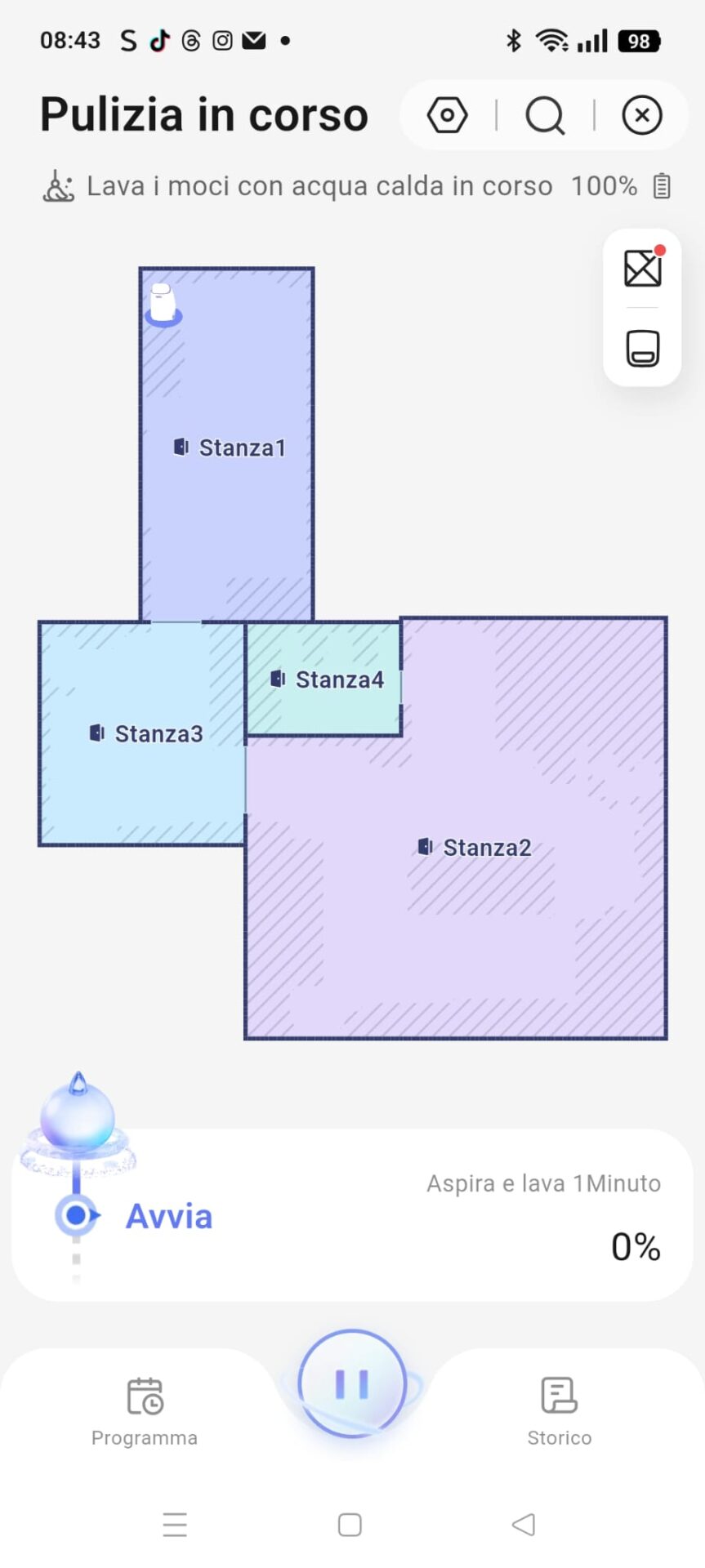 L’app Narwal è diventata matura. La mappatura iniziale è rapidissima (circa 8 minuti per 100 mq) e permette una personalizzazione capillare: