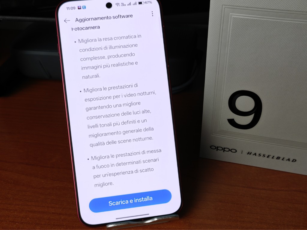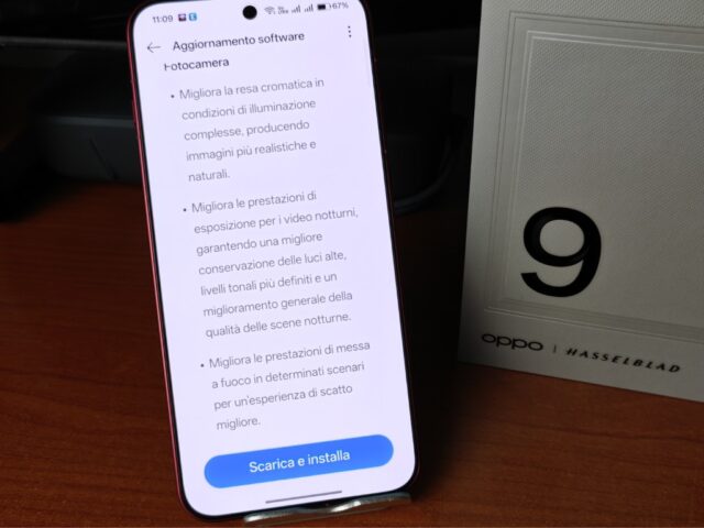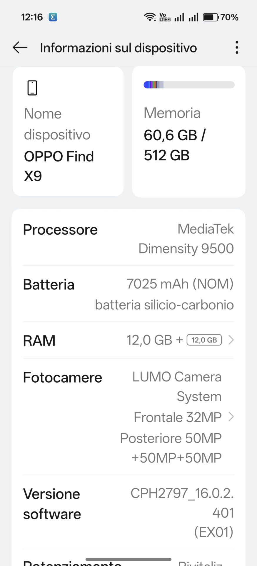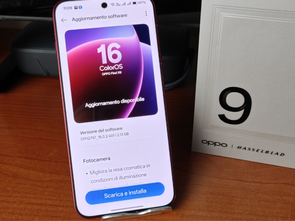 Il Find X9 debutta con ColorOS 16, basata su Android 16. Il software non è solo un’interfaccia, ma un ecosistema potenziato dall’IA. Come sempre, alla fine della configurazione, è arrivata la notifica di un nuovo update che, come potete vedere dagli screenshot, migliorano soprattutto la componente fotografica.