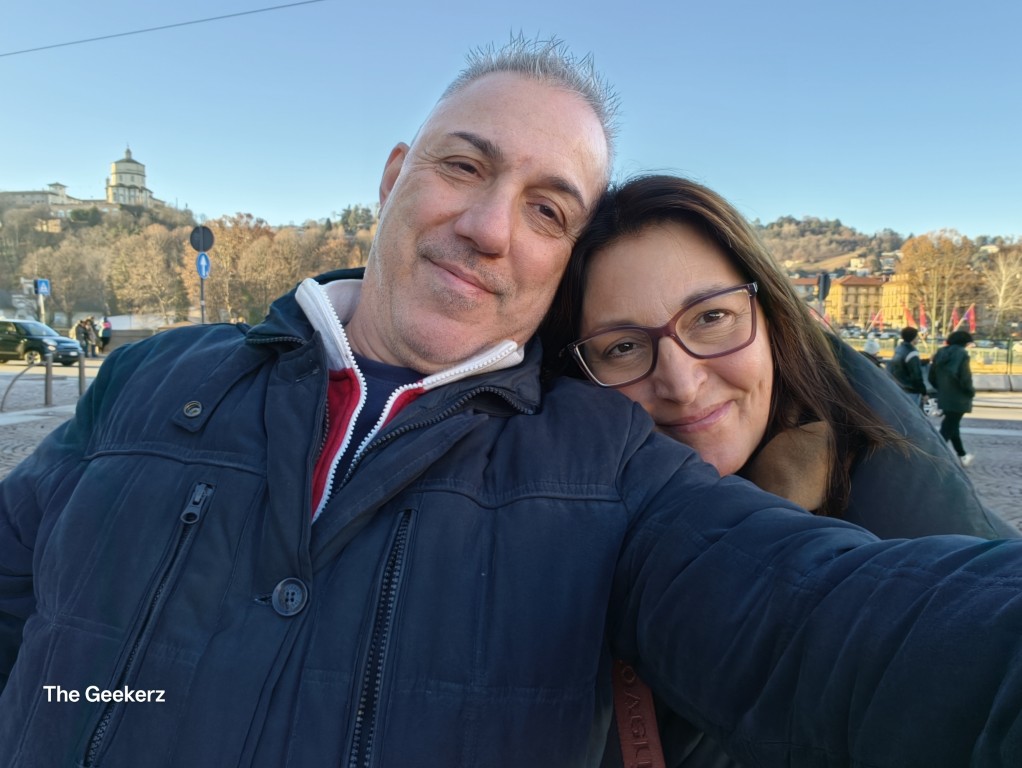 La stessa qualità del comparto fotografico principale la troviamo anche in quella frontale da 32 MP, una vecchia conoscenza della produzione Oppo. Colori, contrasto e qualità sono ai livelli massimi possibili per uno smartphone. Anche per questa fotocamera abbiamo la possibilità di scegliere due diverse distanze focali, come potete vedere dalle immagini. Sullo sfondo un altro bellissimo scorcio del centro di Torino, con l’austero Monte dei Capuccini, sede del Museo della Montagna.