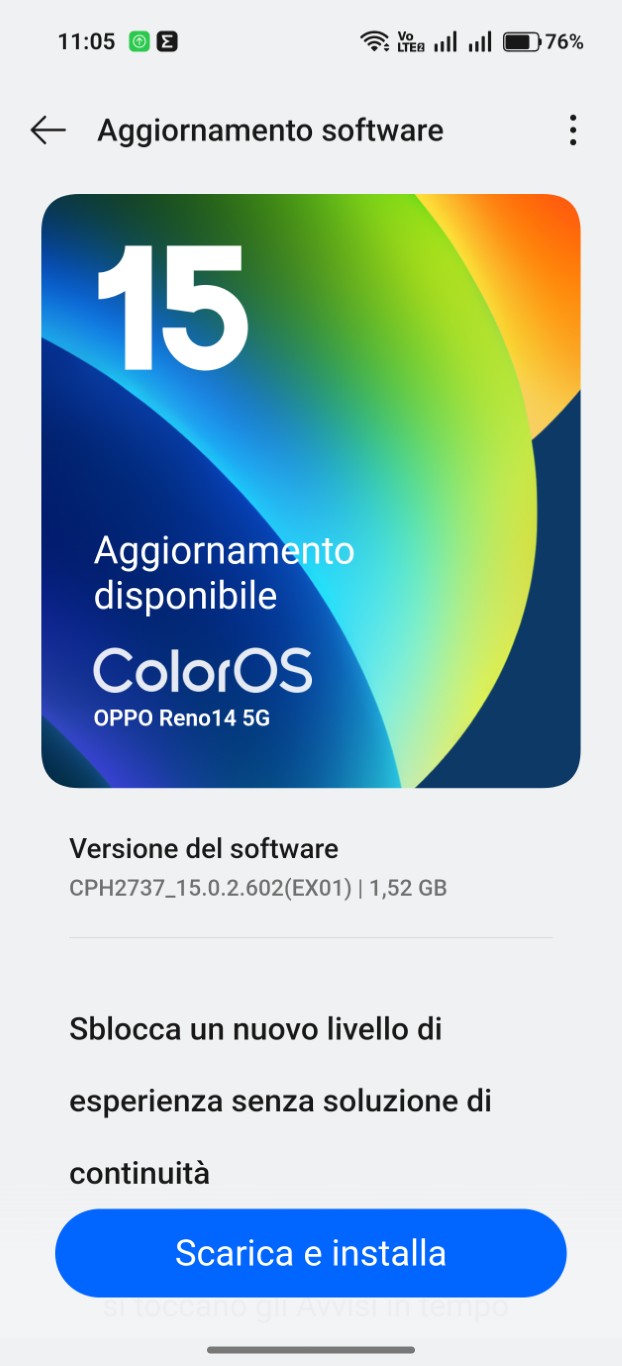 In queste settimane di utilizzo, il mio OPPO Reno 14 si è aggiornato due volte, ogni volta con changelog relativo alle nuove patch di sicurezza ed al fix di alcuni bugs. In ogni caso si tratta di un sistema ormai maturo che permette all’OPPO Reno 14 di “girare” senza nessun tipo di problema. Pur senza esagerare con i titoli, permette anche un gaming di tutto rispetto.