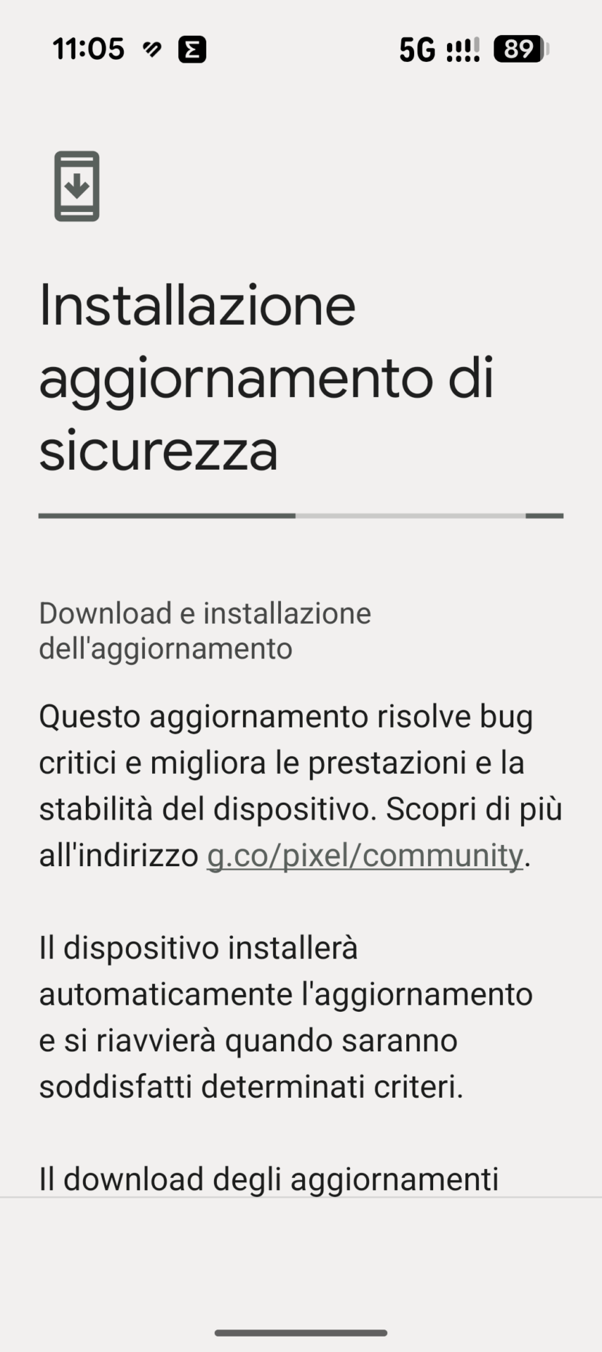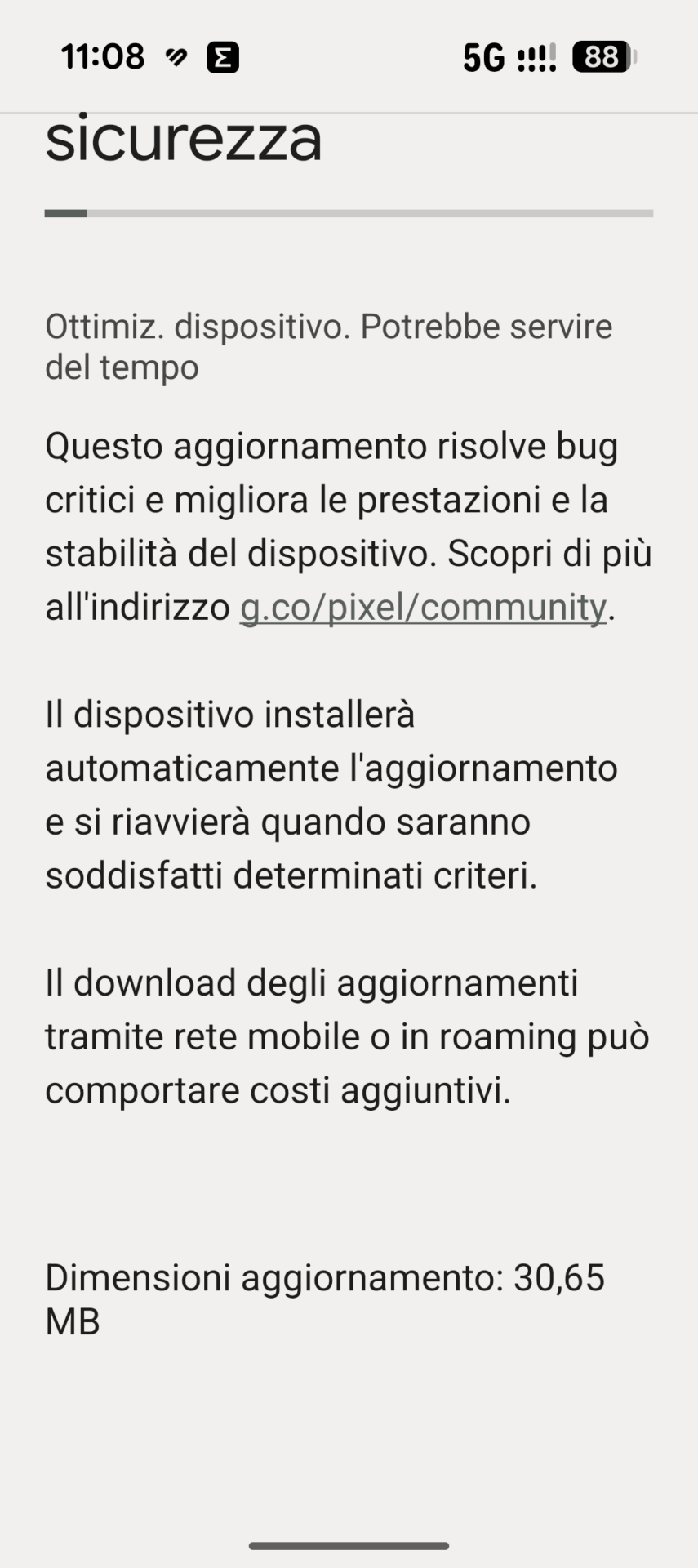 Oggi, invece, il Pixel 10 ha segnalato la presenza di un aggiornamento dal peso di poco più di 30 MB per il quale il changelog di Google è alquanto scarno: