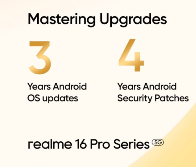 L’ultimo dettaglio ufficiale confermato da realme riguarda il software: il telefono verrà lanciato con Android 16 e la nuova realme UI 7, riceverà 3 anni di aggiornamenti del sistema operativo e un anno extra di patch di sicurezza.