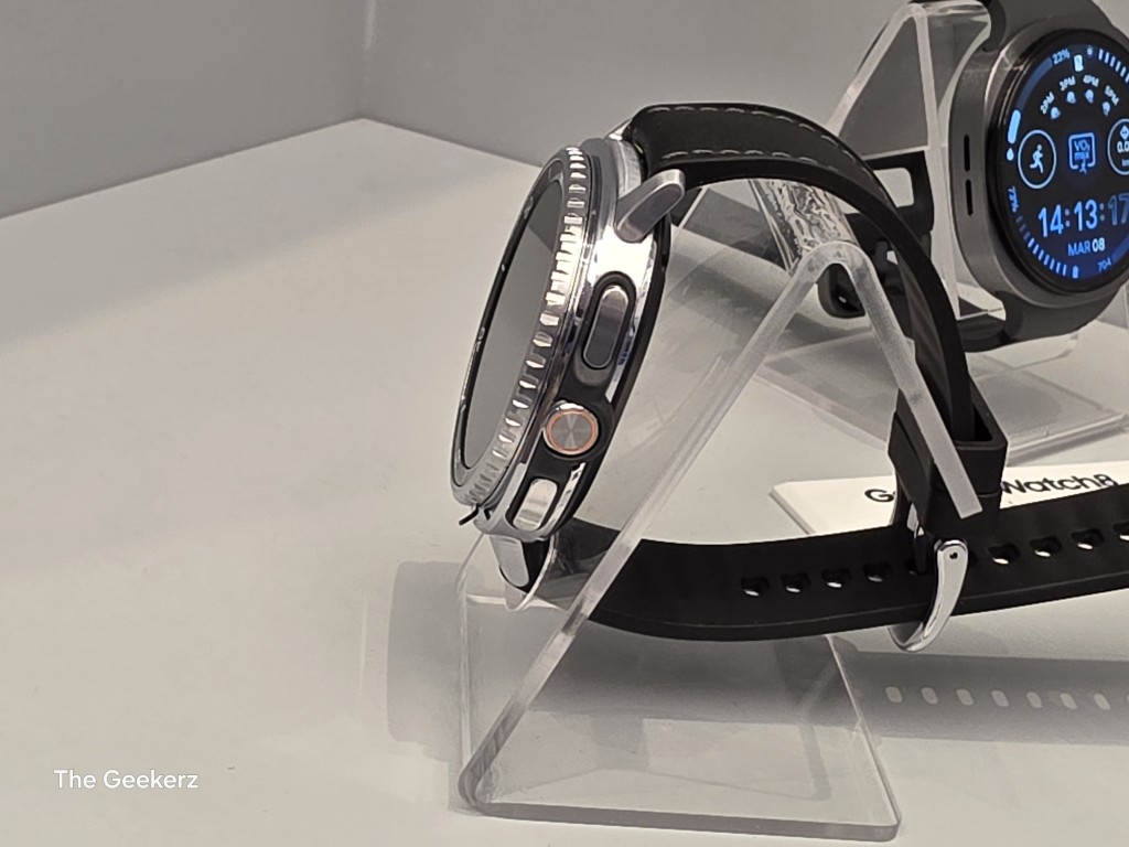 Si intuisce come il design del Galaxy Watch Ultra dell’anno scorso abbia fatto scuola, visto che il quadrante circolare si “appoggia” su una cassa squadrata. Graditissimo ritorno, soprattutto per me che ho sempre amato la versione Classic, la ghiera girevole con azione diretta sui menu dello smartwatch.
