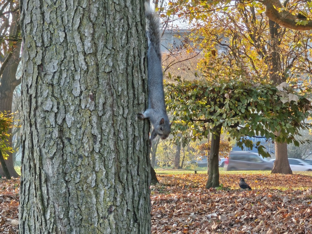 Pur con qualche difficoltà, sono riuscito a “beccare” un grazioso scoiattolino che, in qualche scatto, sembrava mettersi in posa. In ogni caso si può notare la coerenza dei colori, tipicamente autunnali.