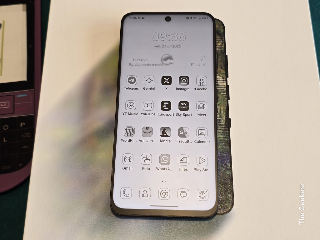 - Modalità E-Ink/Max Ink: questa è la vera trasformazione. Attivando la Modalità Max Ink, lo smartphone si converte in un e-reader dedicato. Lo schermo passa a una visualizzazione in bianco e nero o con palette di colori estremamente limitate, il sistema operativo riduce le animazioni, chiude le app in background non essenziali e limita le notifiche. Il consumo energetico crolla drasticamente, permettendo un’autonomia che può raggiungere e superare i tre giorni di utilizzo leggero o più di cento ore in modalità lettura con una singola carica. Questo è un vantaggio enorme per gli amanti della lettura e per chi necessita di concentrazione. In questa modalità non sono disponibili tutte le applicazioni ma il numero è limitato a sette.