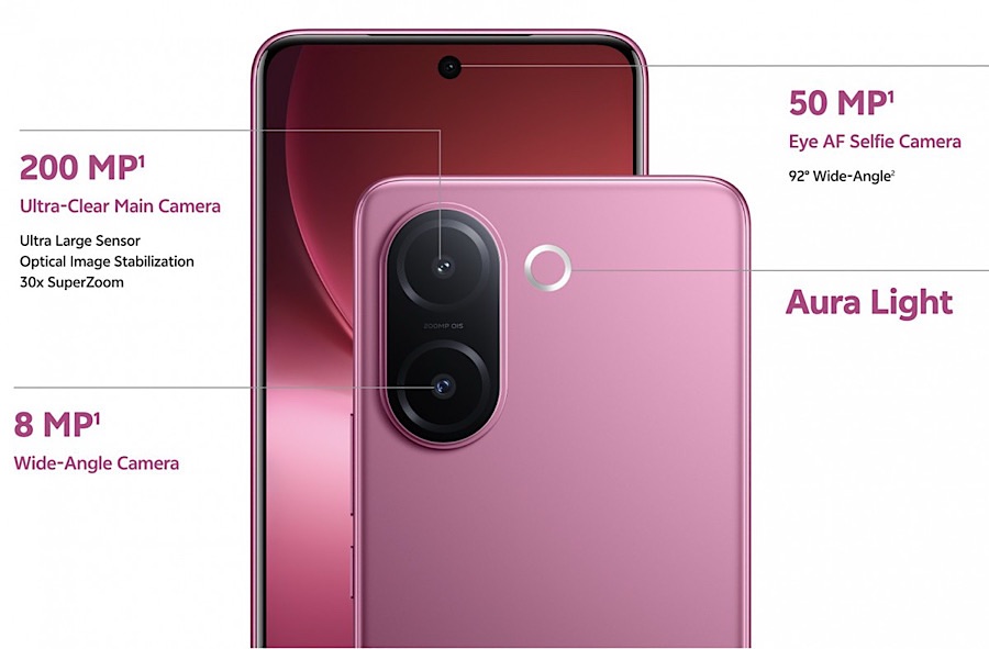 Sensore principale da 200 megapixel con stabilizzazione ottica dell’immagine e Super Zoom 30x, secondo sensore da 8 megapixel grandangolare e flash LED, anteriormente invece troviamo un sensore da 50 megapixel con messa a fuoco ed angolo di scatto di 92 gradi.